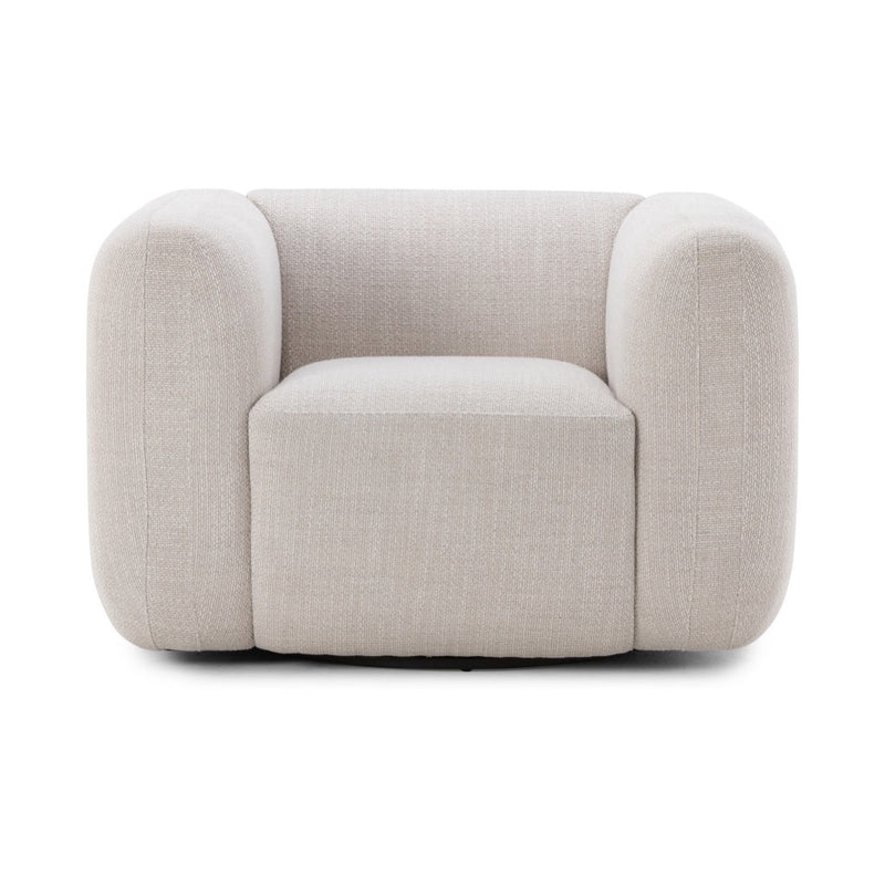 Exaggerated curves create a casual, inviting spot for lounging. Plush and durable performance fabric pairs with a 360-degree swivel for total modernity. Performance fabrics are specially created to withstand spills, stains, high traffic and wear, ensuring long-term comfort and unmatched durability.