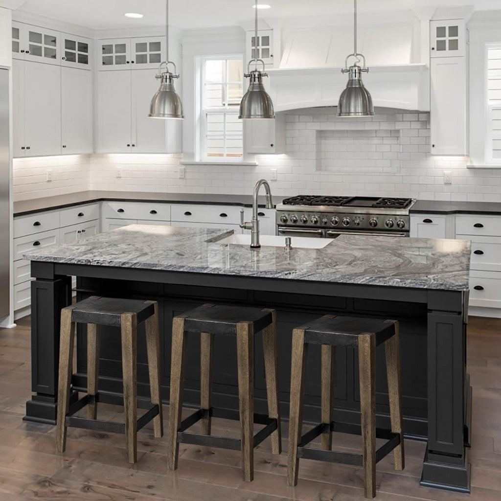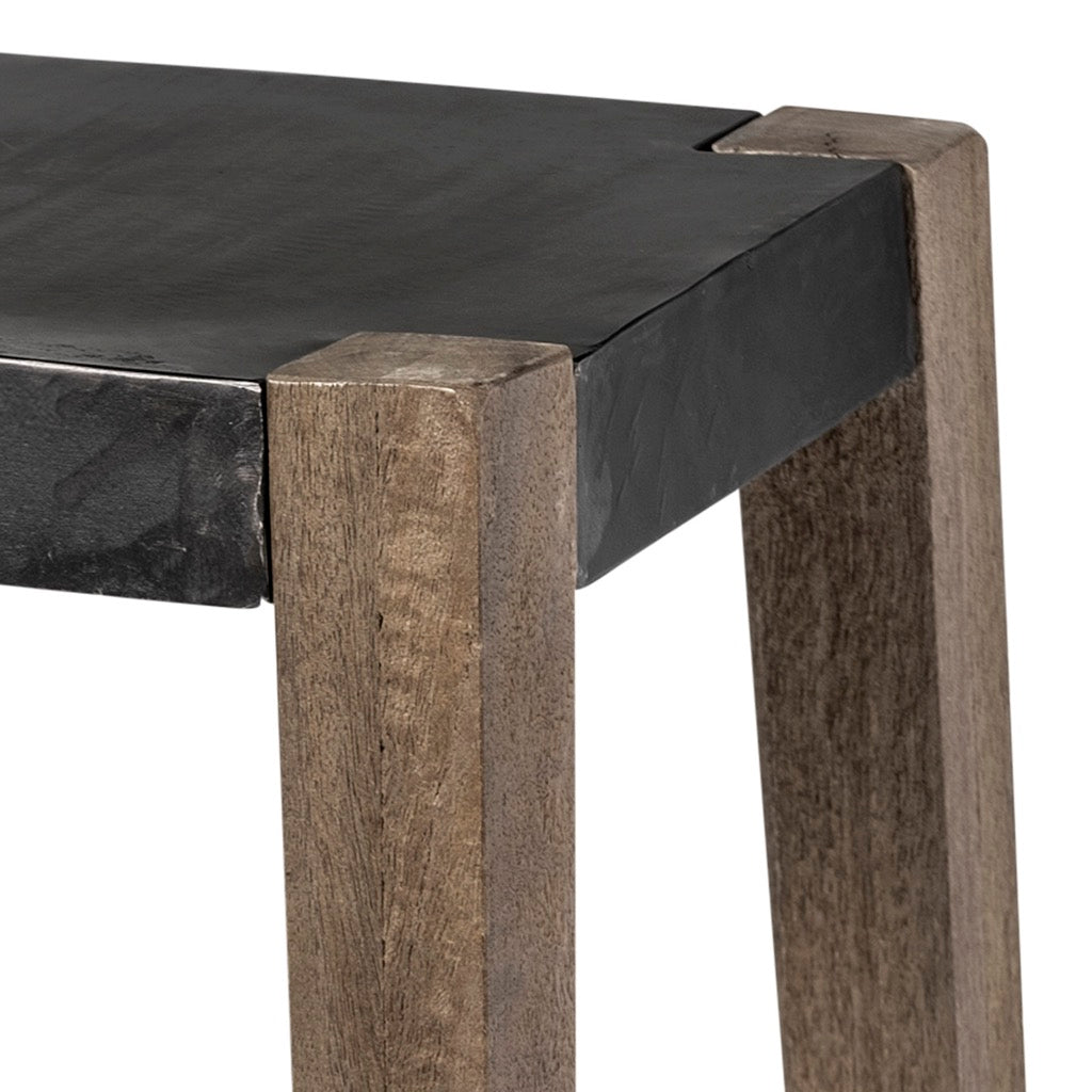 - Sturdy Wood and Iron Frame: Expertly crafted from solid wood and iron components, the Nell is a bar stool made to stand the test of time. The stool's flat iron seat is braced by a four-legged, solid mango wood frame that ensures exceptional stability and sturdiness.