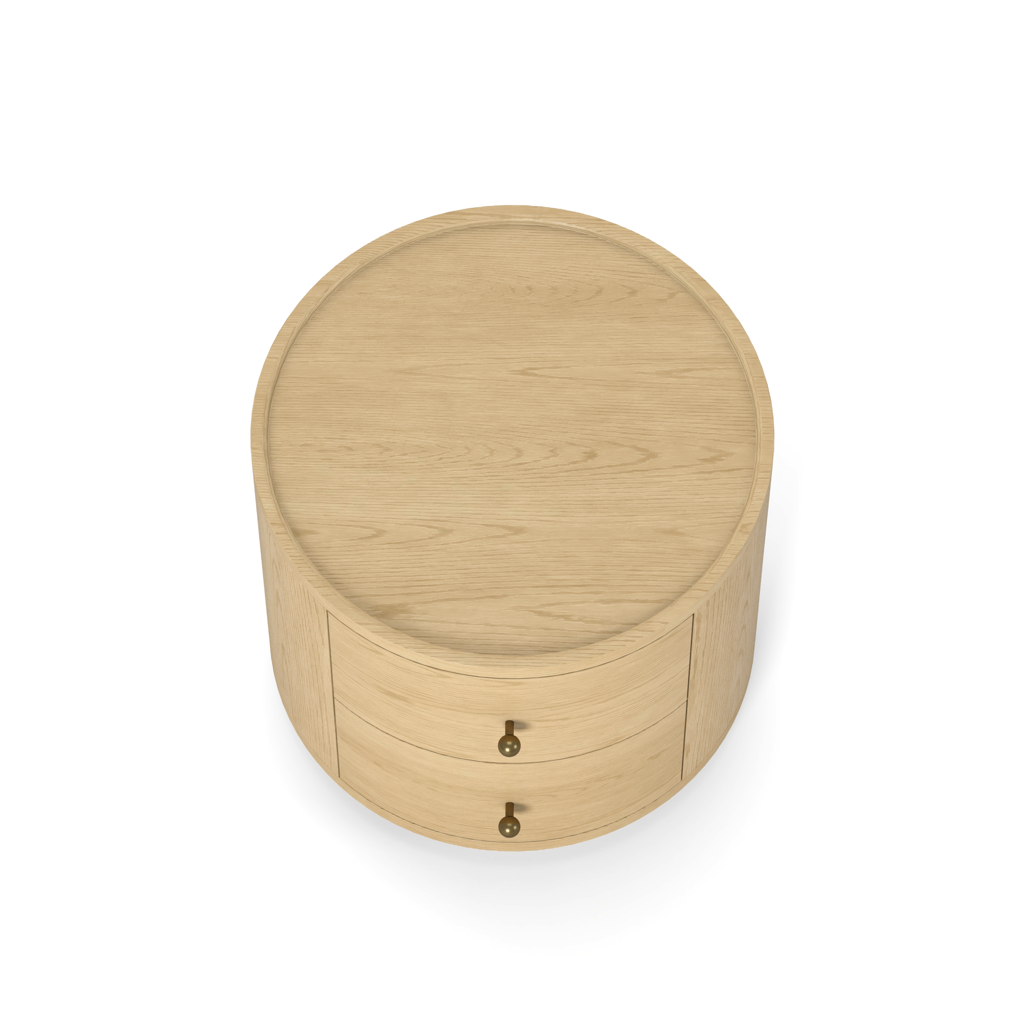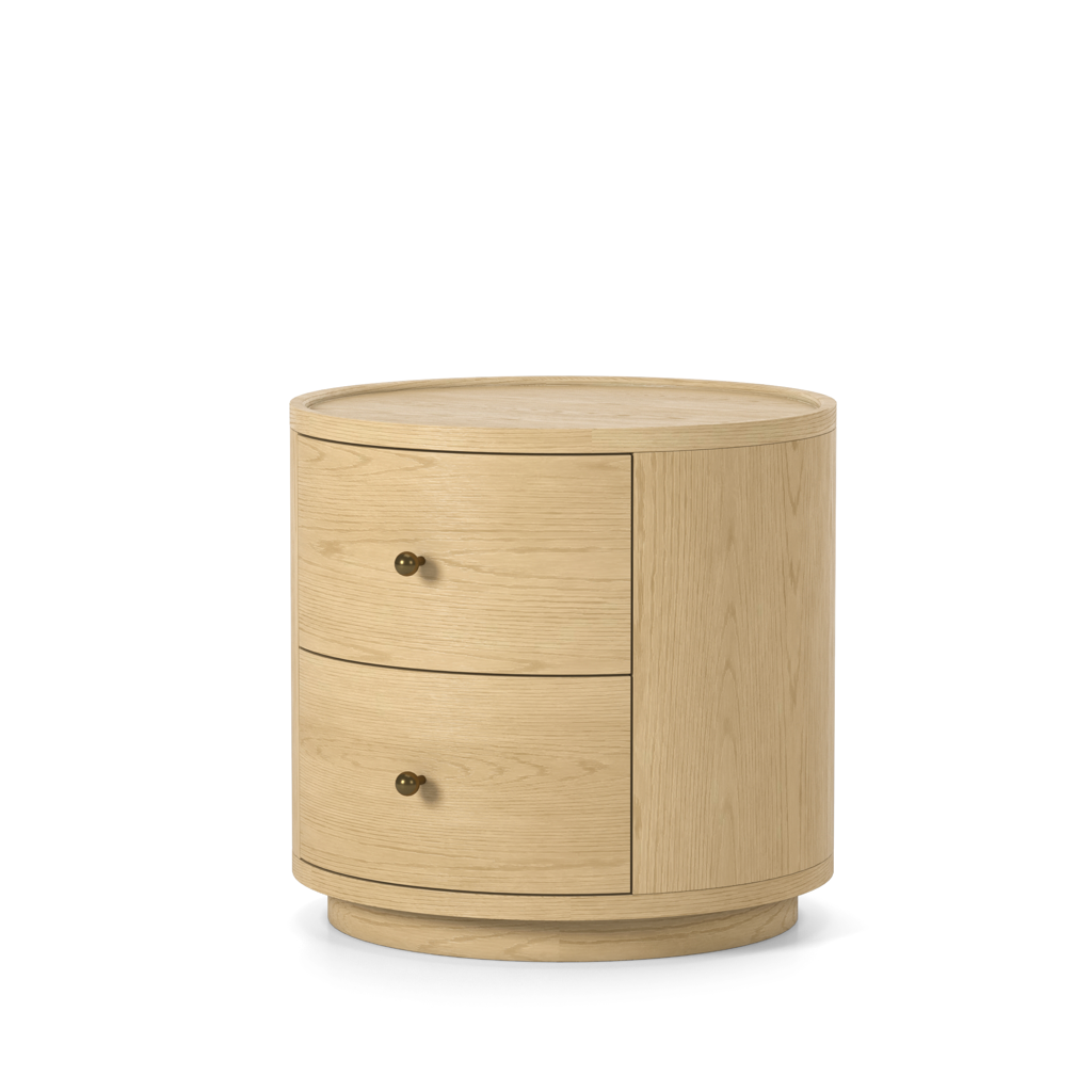 Bring some timeless modernity with our round shaped Newport end table. Complete with drawers and seamless footing to offer a natural look. Use in a TV room and a games room for minimalist appeal.