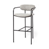 The Parker is a simple yet stylish counter stool featuring a gray fabric-covered seat and back perched atop a sleek, four-legged metal frame.