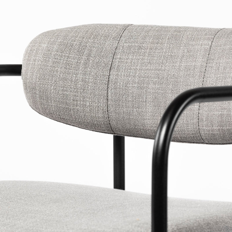 - Plush Fabric Upholstery: The Parker, featuring an open-back seat wrapped in plush gray-toned fabric, makes not only for a comfortable seating option but also a visually enticing addition to any space and setting.