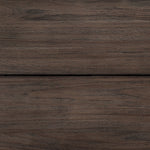 Solid FSC®-certified teak in a stained toasted brown finish with uniquely linear joint and connection details, complemented by cross stretchers running through the center of this outdoor dining table. Cover or store inside during inclement weather and when not in use.