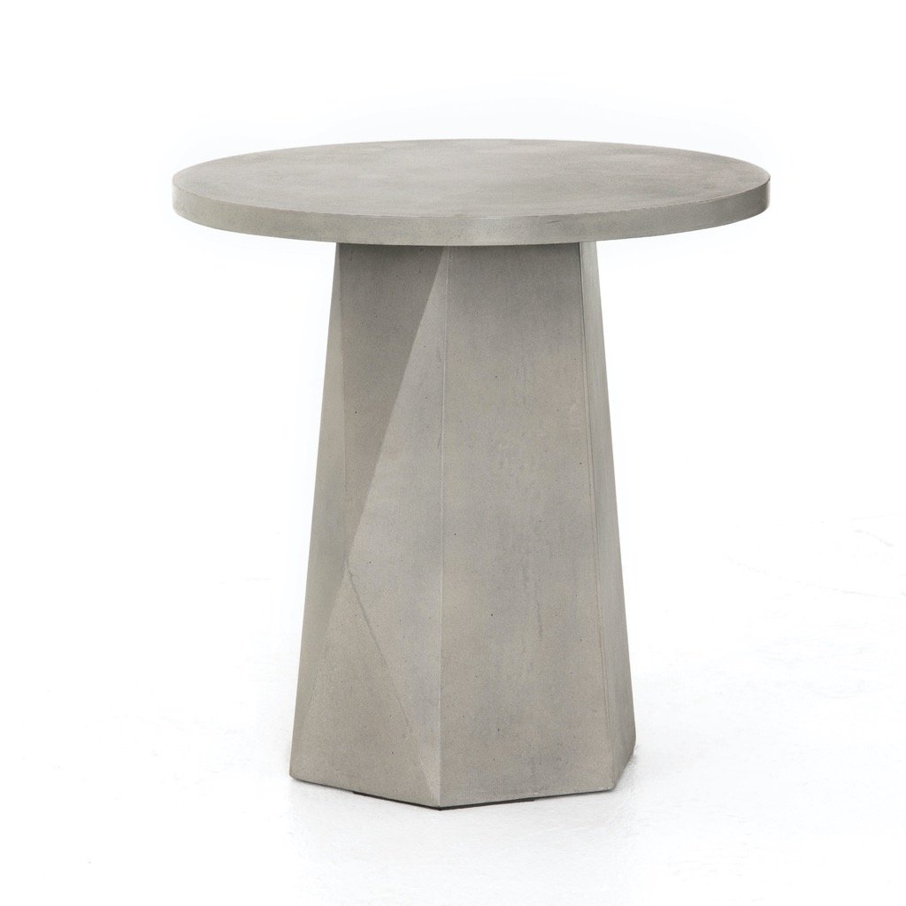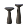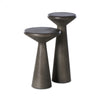 Concrete accent tables stagger in height for a wide variety of options. Makes for an impactful pedestal for display or handy extra surface beside a sofa. Dark grey in color for a clean, industrial-spun vibe. Tall table measures 8.5"D x 20"H. Shorter table measures 10.5"D x 16.5"H.