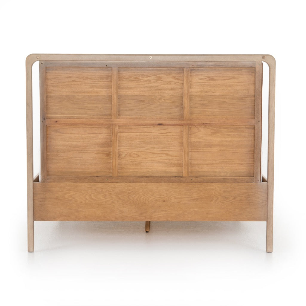 Light, clean and totally unique. Washed oak frames a sling-style headboards of tan top-grain leather, for a modern material mix and soft look.