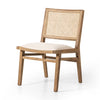 Mixed materials make the chair. Solid, sand-colored beech wood features a natural cane back for extra texture, while a butterscotch-finished leather seat serves total comfort.