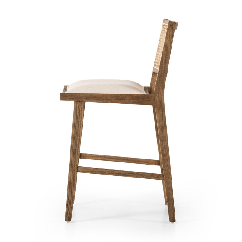 Mixed materials make the chair. Solid natural beech wood features a natural cane back for extra texture, while a butterscotch-finished faux leather seat serves total comfort.