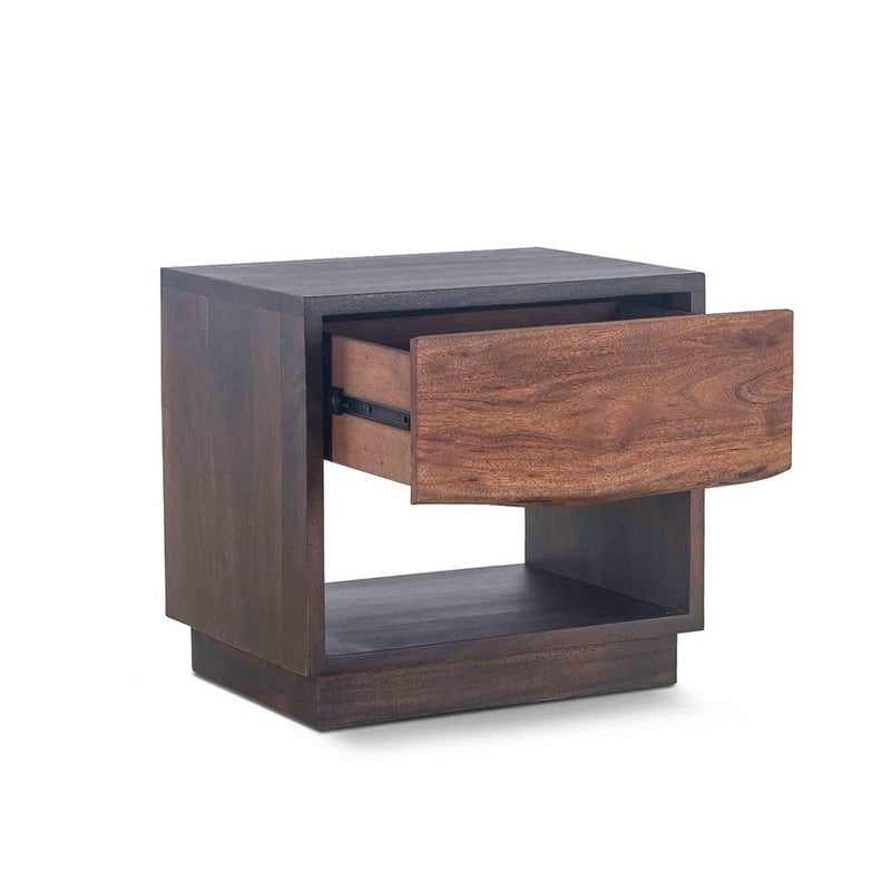 Natural, raw wood finishes fused with the mid-century modern design give the pieces of the San Marino collection their characteristically organic look. The pieces in this collection feature genuine live edge detailing that is hand-crafted from solid acacia wood.