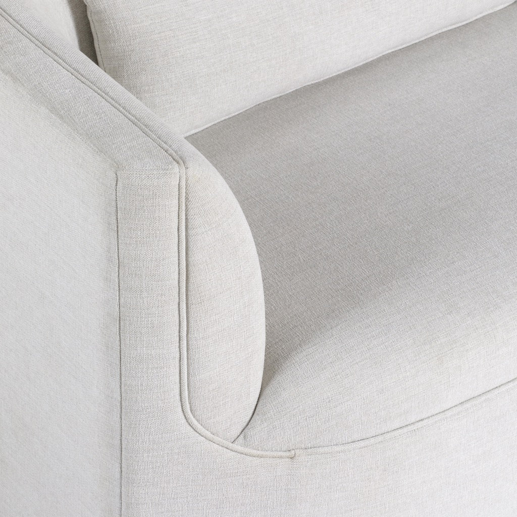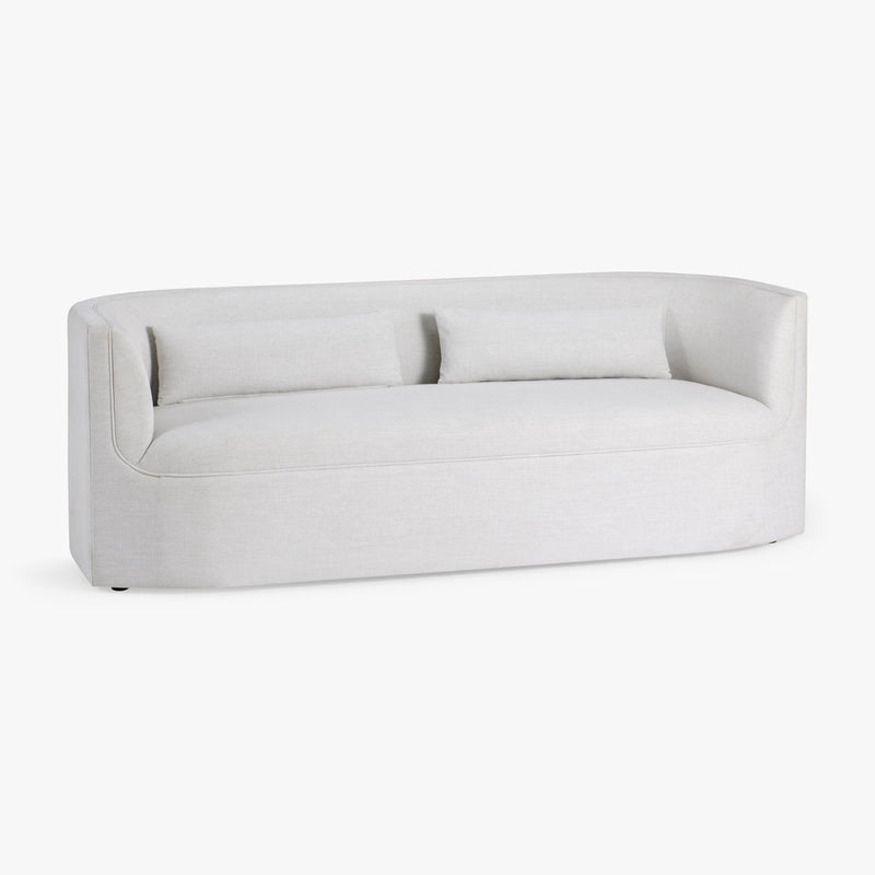 The Santo Sofa offers a sleek, tailored look with its tight back and tight seat design, available in sophisticated Banks Balsam or New Page Dove upholstery. Perfectly balancing comfort and style, this sofa is an elegant addition to any living space.