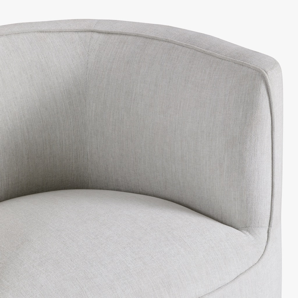 The Santo Swivel Chair is an updated version of our original Santo design, now with the added convenience of swivel functionality. Featuring a barrel-shaped silhouette, this chair offers both comfort and style. Upholstered in our new Page Dove fabric, it adds a soft, modern touch to any space. Perfect for living rooms, offices, or reading nooks, the Santo Swivel Chair combines timeless design with enhanced mobility and versatility.