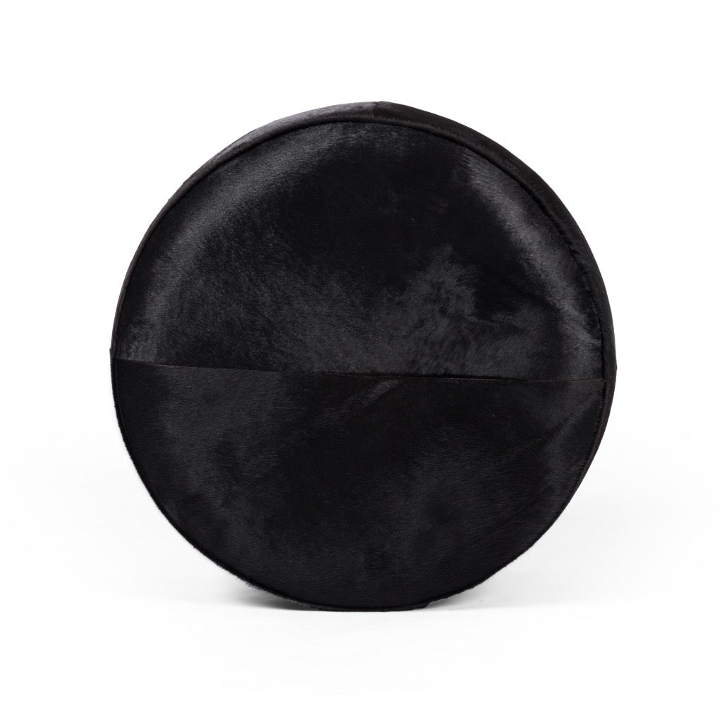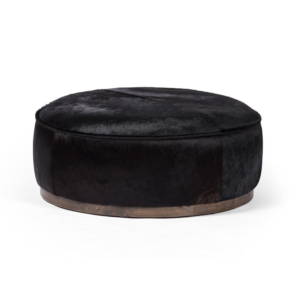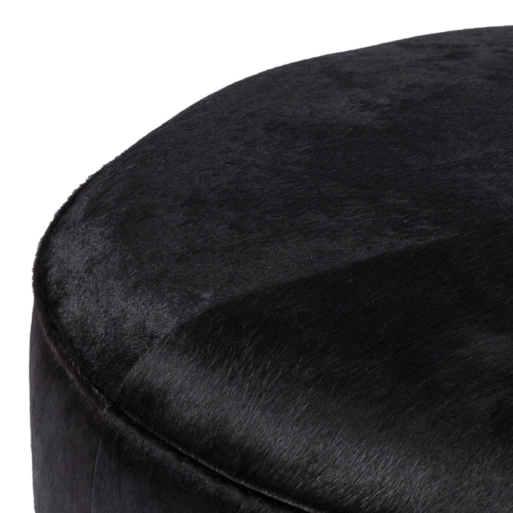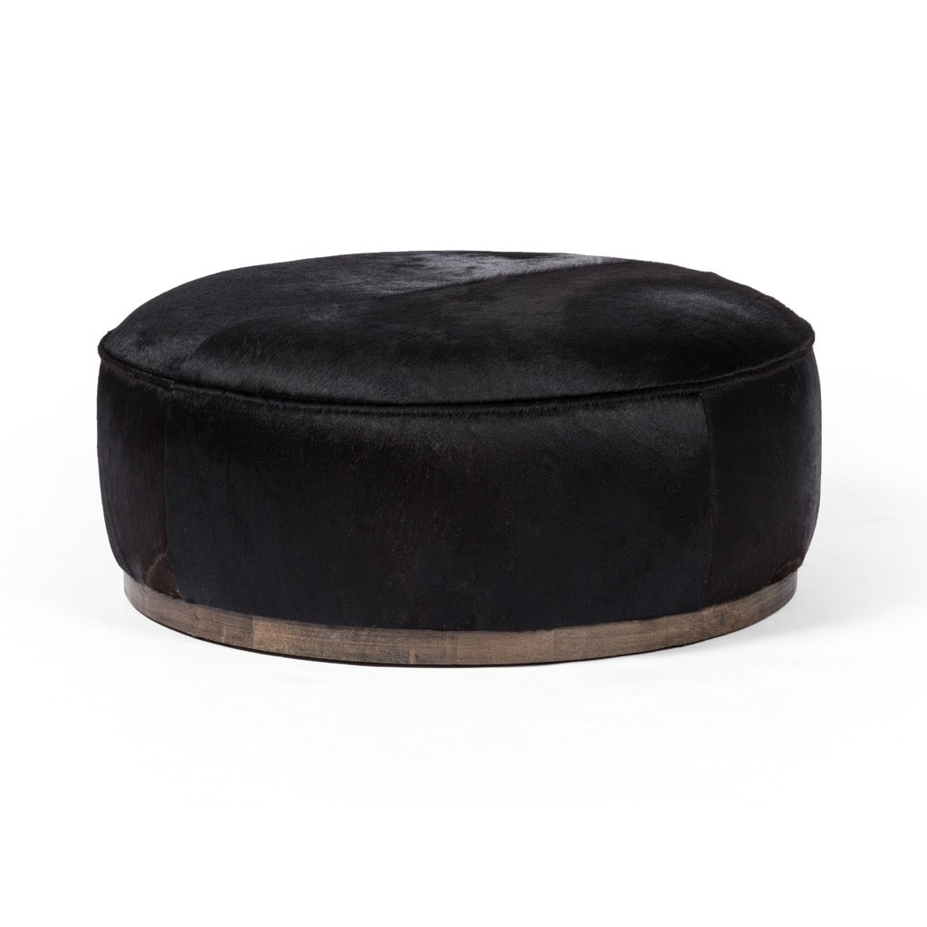 Sinclair Large Round Ottoman - Black Hair on Hide