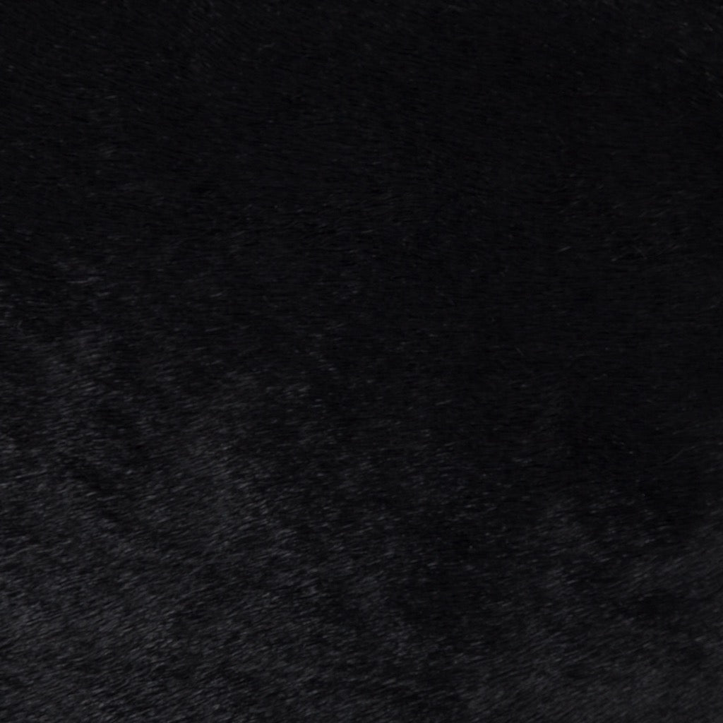 This large, round ottoman of textural hair-on hide brings with it a hip retro vibe as a coffee table or extra seating. Covered in soft and luminous black hair-on hide, which is naturally warm and textural with authentic highlights.