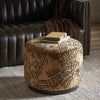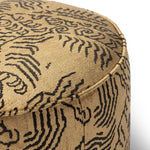 Place this round ottoman just about anywhere. Upholstered in an abstract, Tibetan-inspired landscape motif, woven from soft chenille yarns with subtle texture for added depth, dimension and drama.