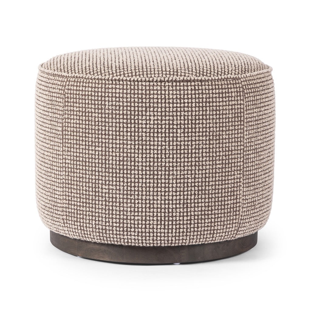 Upholstered in a granite flax/linen blend and paired with a deep brown base, this 36" square ottoman can be placed just about anywhere – bringing with it a retro vibe.