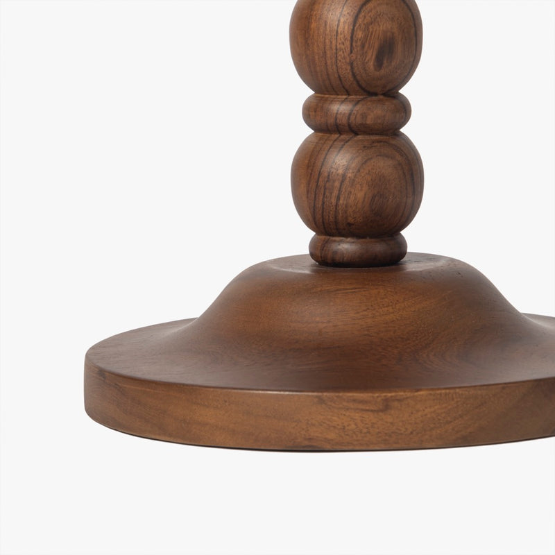 The Spindle Drink Table combines functionality and style with its round design and light-stained acacia wood finish. Featuring a classic spindle base, this compact table is perfect for holding beverages or snacks, making it a practical addition to any seating area.