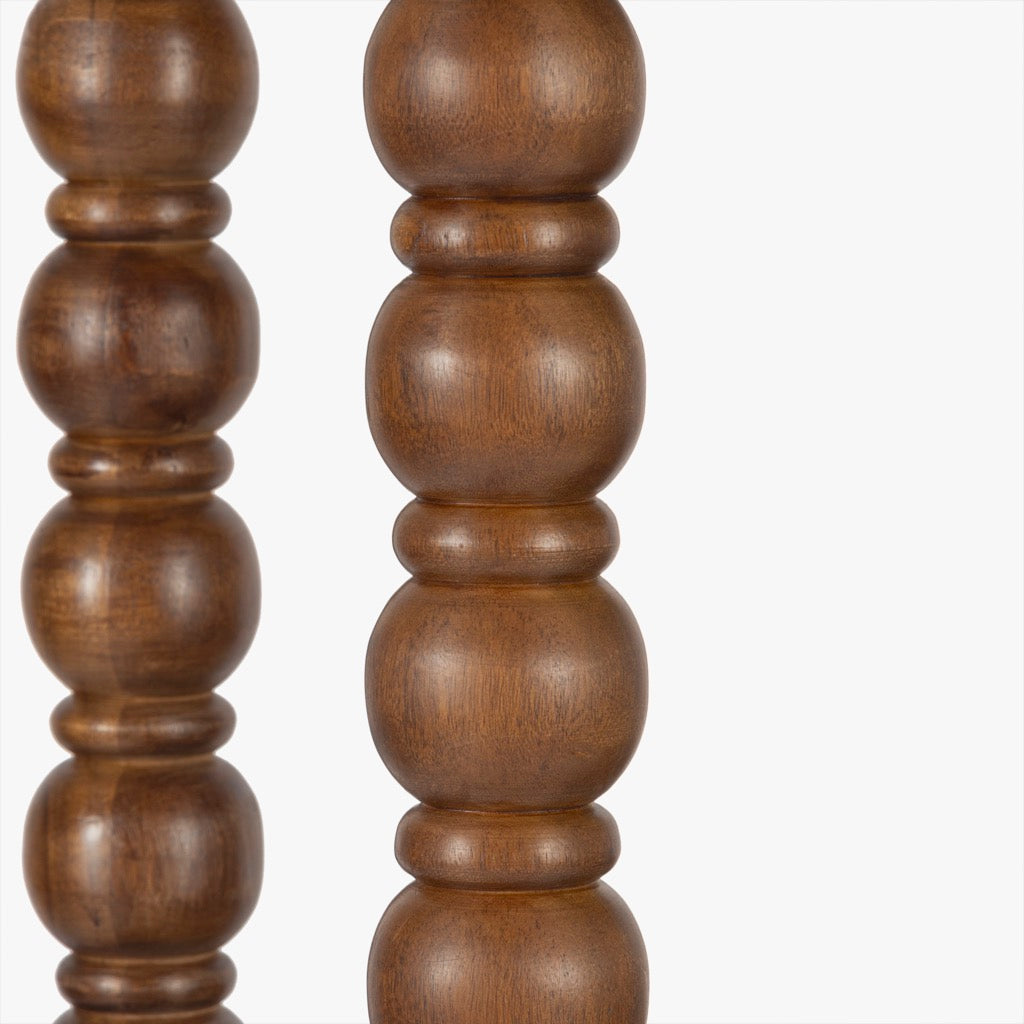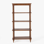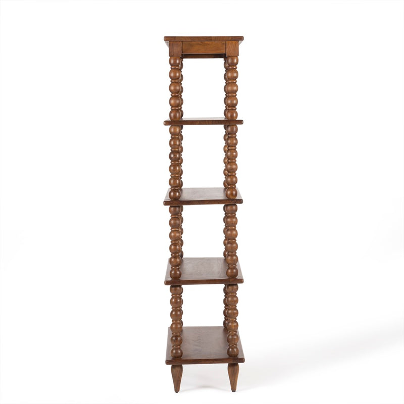 Showcasing the beauty of craftsmanship, the Spindle Tall Bookcase is crafted from a combination of durable mango and acacia wood, finished in a light stain that enhances its natural grain. This elegant bookcase features a charming spindle design, making it a stylish and functional addition to any room, perfect for displaying your favorite books and decor.