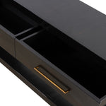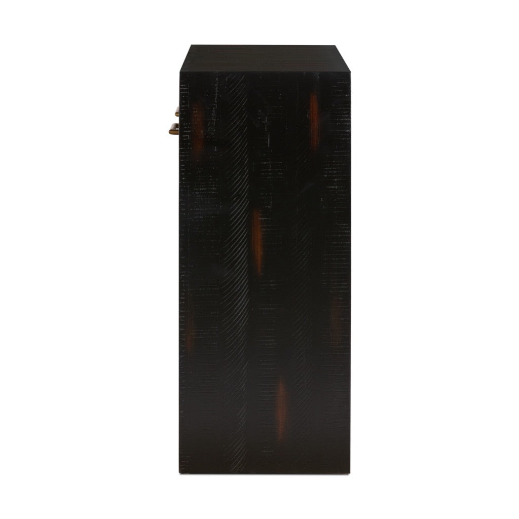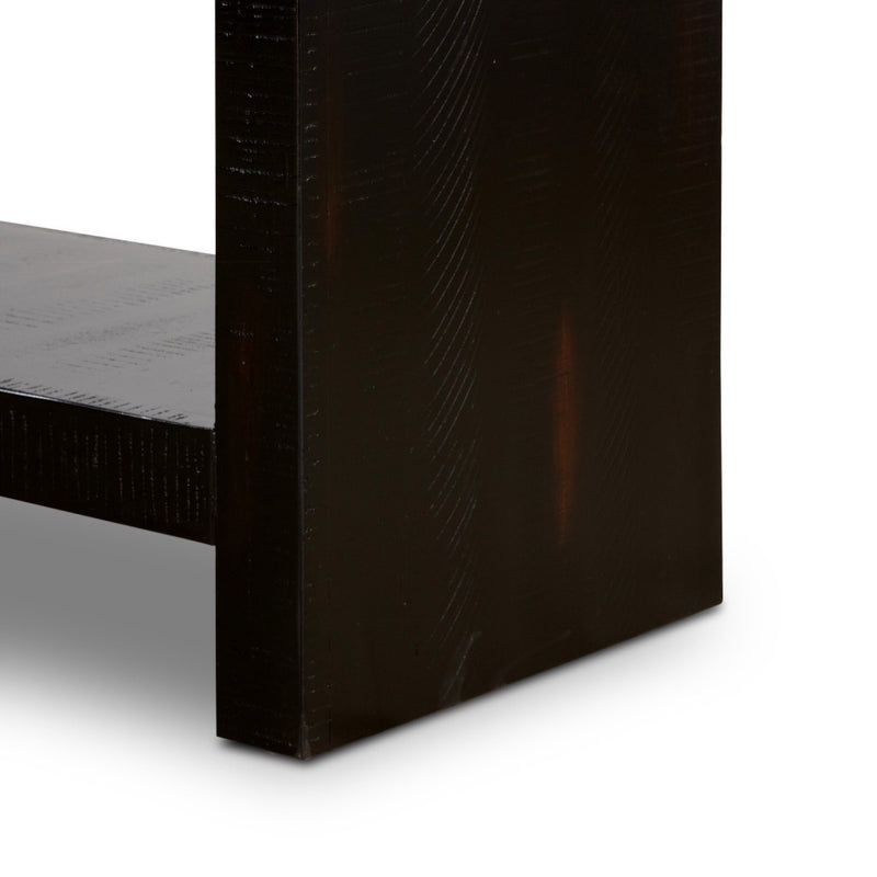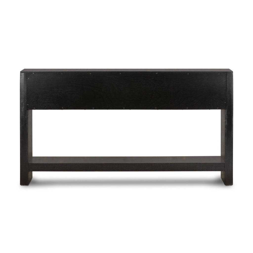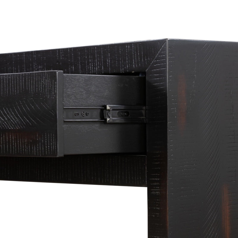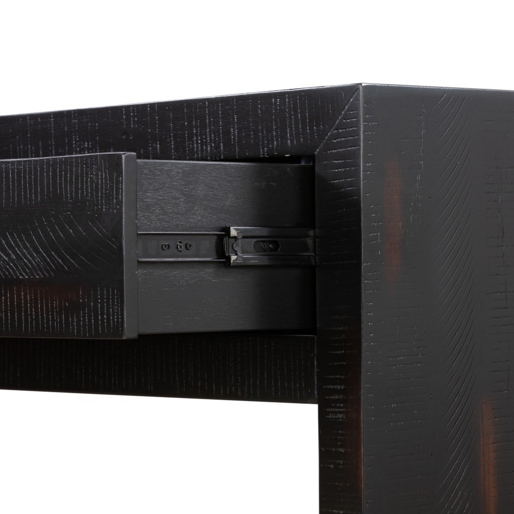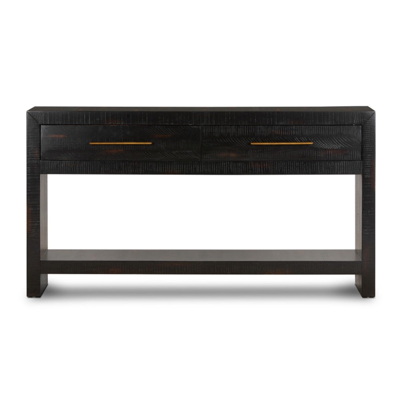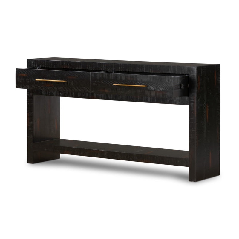 Crafted of pine in time honored design, the Suki Console has two elegant drawers and a burnished black finish.