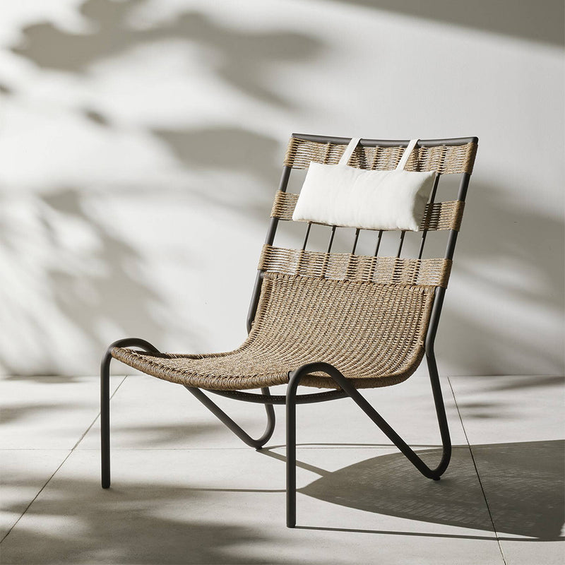 A vintage-inspired weave pattern adds a touch of nostalgia to the everyday sling chair. Relaxed, casual sit atop modern S-shaped legs crafted of durable aluminum. Includes removable, adjustable back pillow. Cover or store indoors during inclement weather and when not in use.