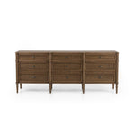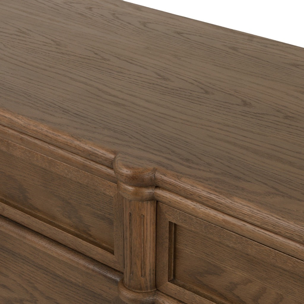 Made from toasted oak with slim legs, nine drawers bring antique European vibes to modern bedroom styling. This item complies with the STURDY Act.