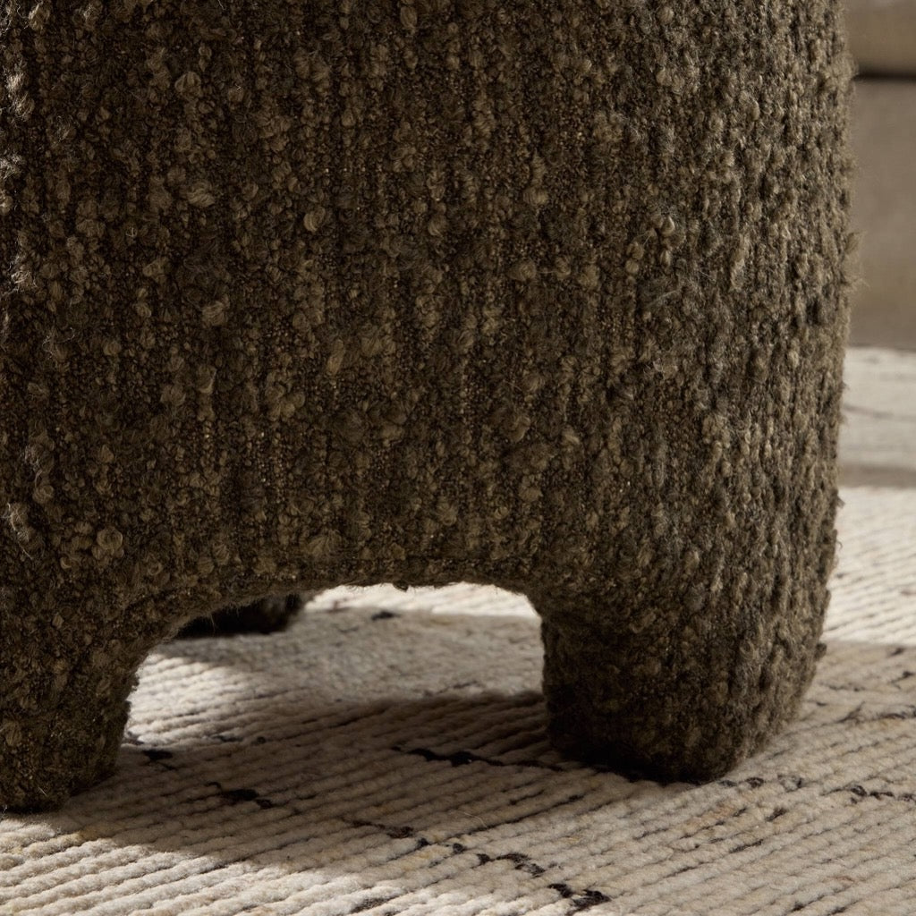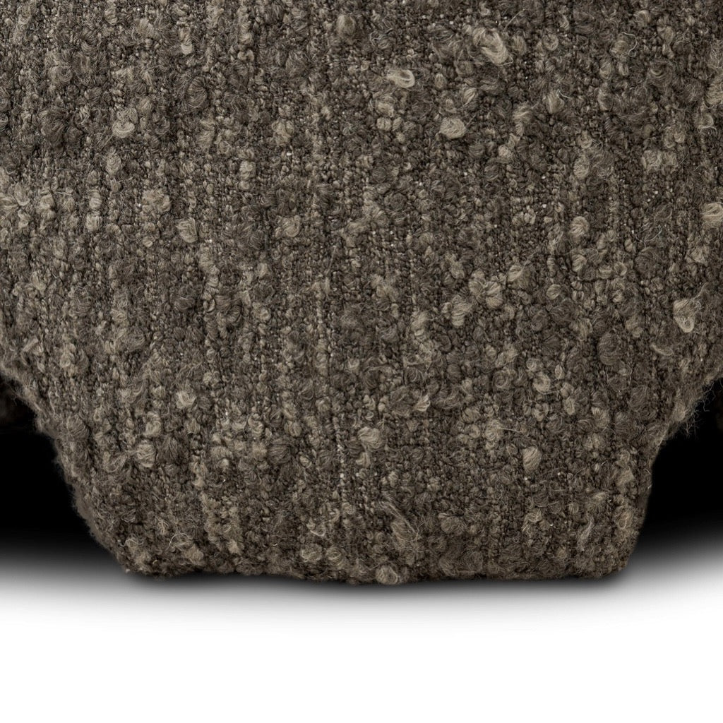 Textural, blended fabric encases this ottoman from top to bottom for a cozy extra seat or surface. Curved tripod legs and soft arches round out the look.