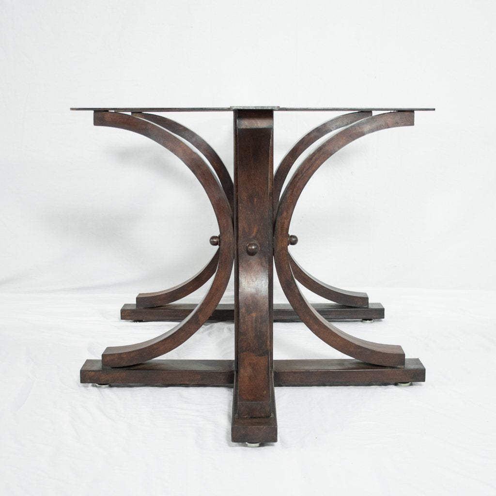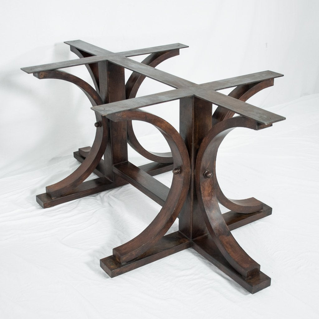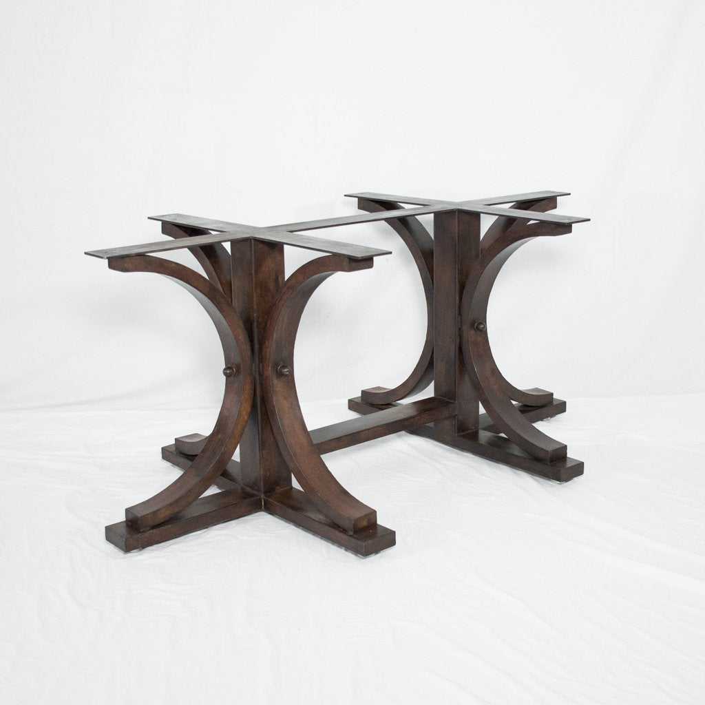 The elegant curves our most popular table base are adapted to longer table designs. Pair the Vestal Long Dining Table Base with a rectangle, oval or capsule shaped tabletop and create a unique dining table that is perfect for your family. We are parital to pairing this design with our copper tabletops but also works great with other materials like glass and wood tabletops.