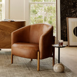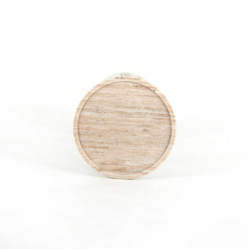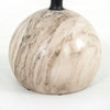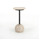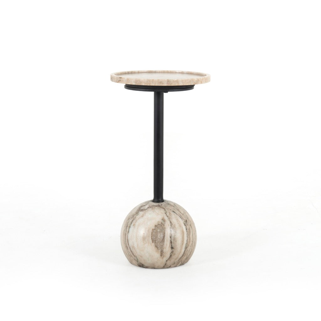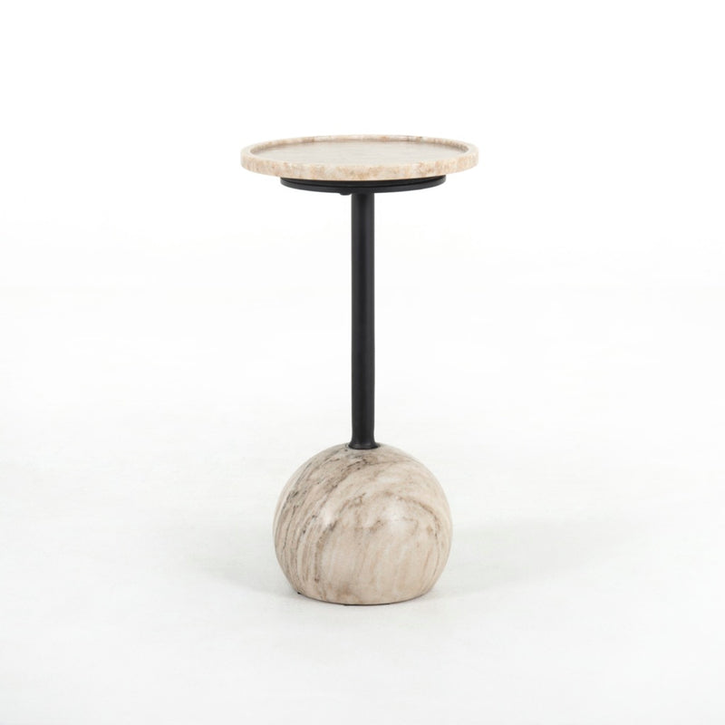 Layer in sophistication anywhere. A dramatically shaped base of white antique marble supports slim iron piping and rounded tray-style tabletop - the perfect place to perch a drink or favorite book.