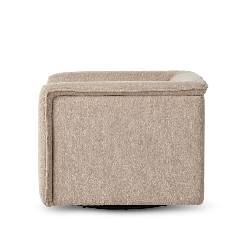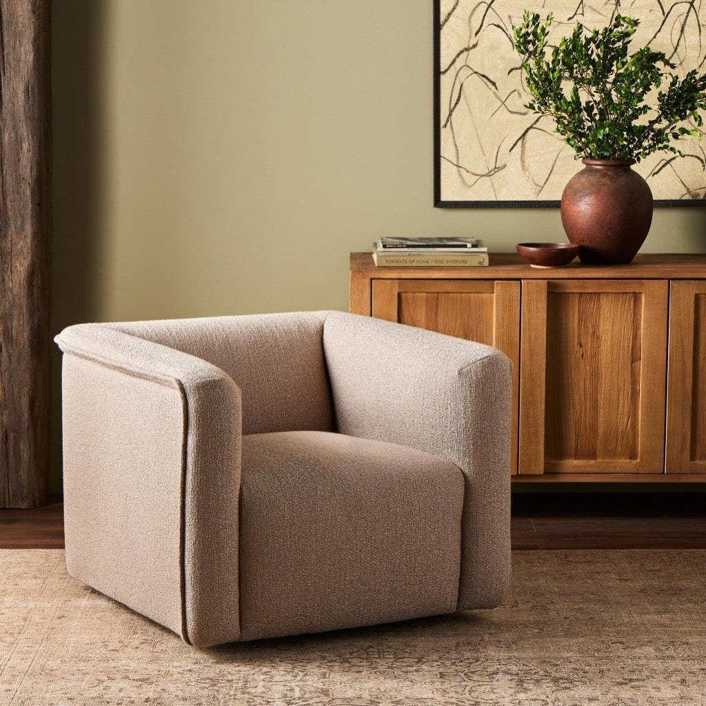 Inspired by 70s vintage seating and plush duvet toppers, a structured, supportive seat is covered in a high-texture performance fabric. A 360-degree swivel modernizes this vintage-leaning look. Performance fabrics are specially created to withstand spills, stains, high traffic and wear, ensuring long-term comfort and unmatched durability.