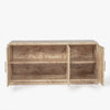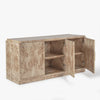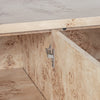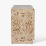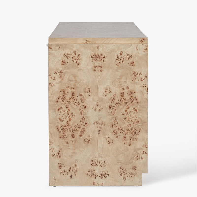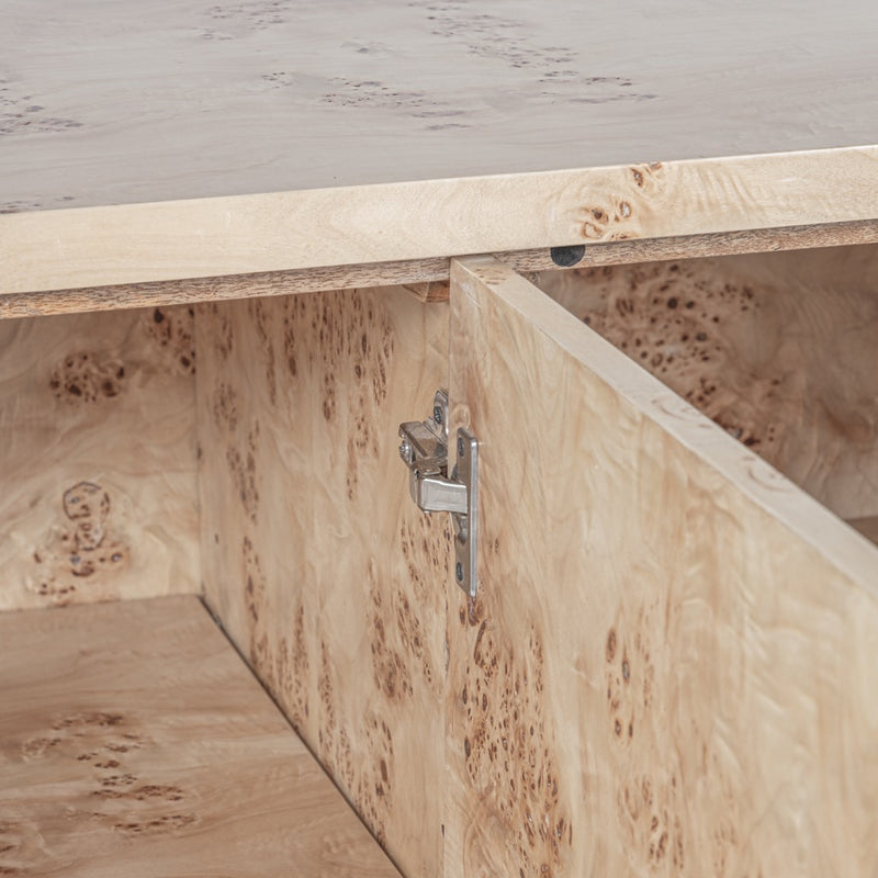 The Wesley Burl Buffet features a striking design in both light and dark burl finishes. Crafted from mango wood, engineered wood, Mapa veneer, and plywood, it offers ample storage and adds a unique touch to your dining or living space.