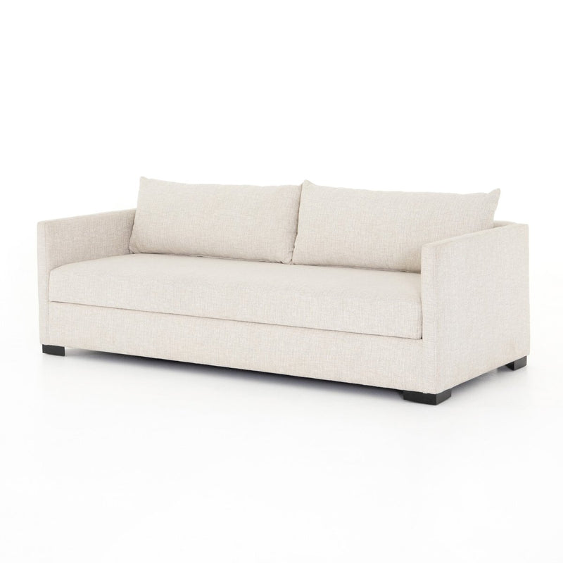 A simple, stylish silhouette redefines the classic sofa bed. With knife-edge pillows and high-performance upholstery, a discreetly concealed sleeper mechanism allows for one-step pullout with ultimate ease. Unfolded, sofa cushions form a comfortable Queen-size bed, ready to welcome overnight guests or make movie nights a little comfier. Best yet, no extra mattress necessary.